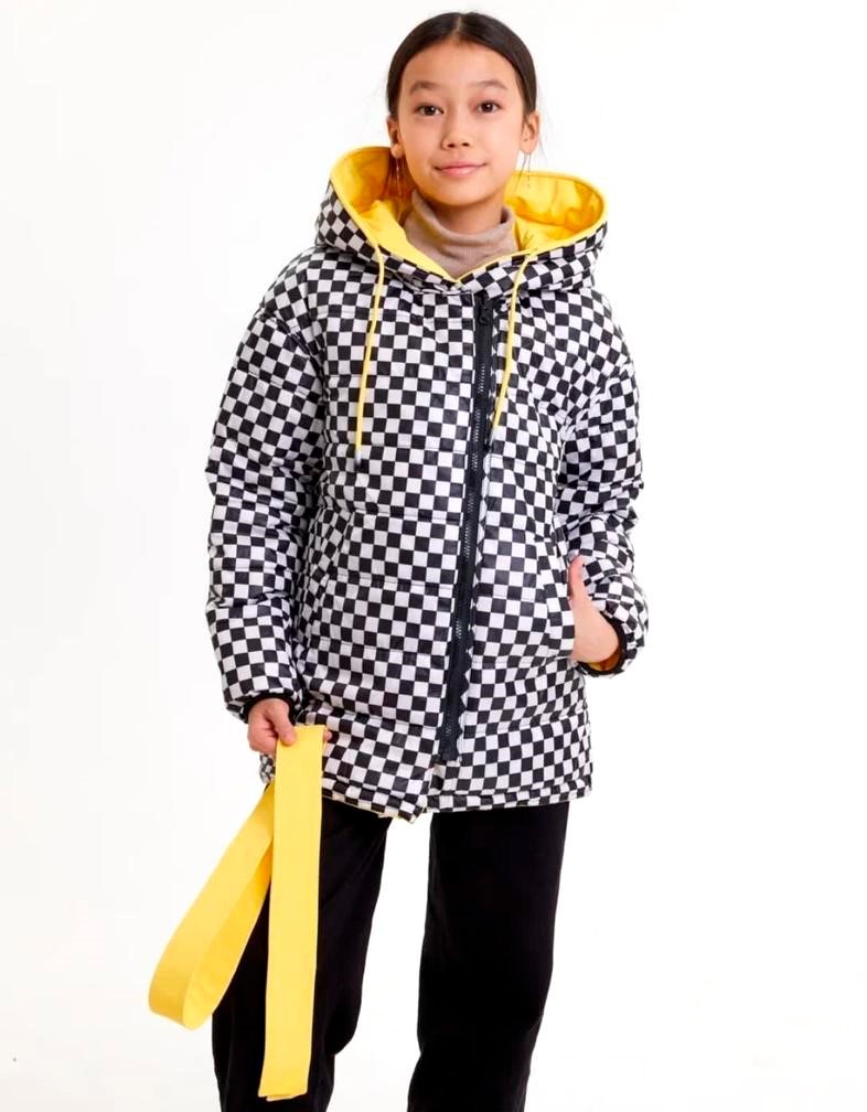 Куртка демисезонная для девочки, черно-белого цвета оптом
