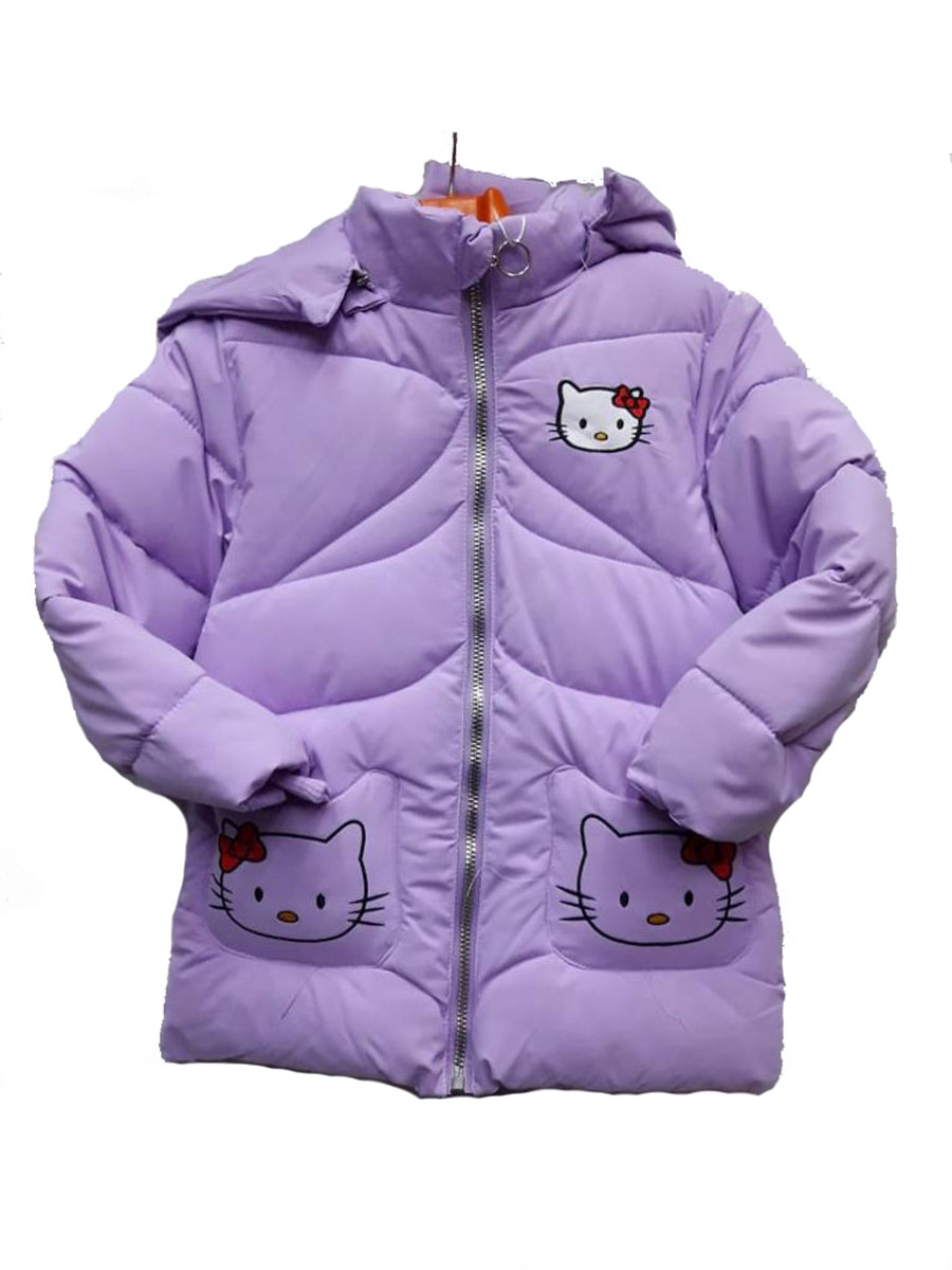 Описание: куртка демисезонная для девочки с Kitti. Цвет фиолетовый. Есть: капюшон, два кармана. Застежка молния.