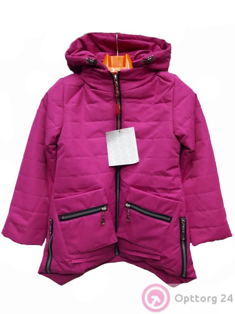 Куртка демисезонная для девочки фиолетовая с молниями по бокам оптом