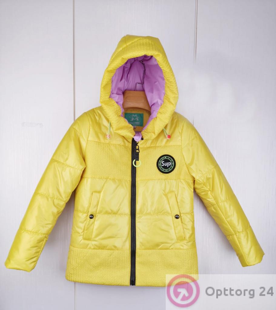 Куртка демисезонная для девочки комбинированная цвет желтый оптом