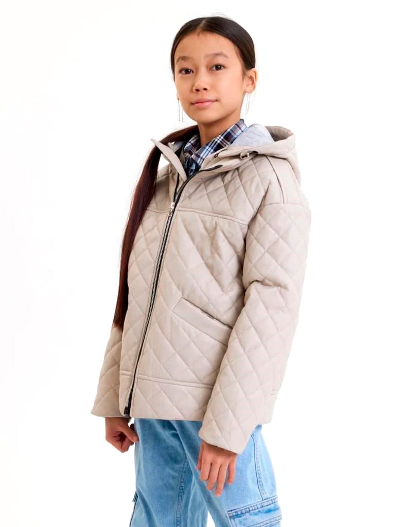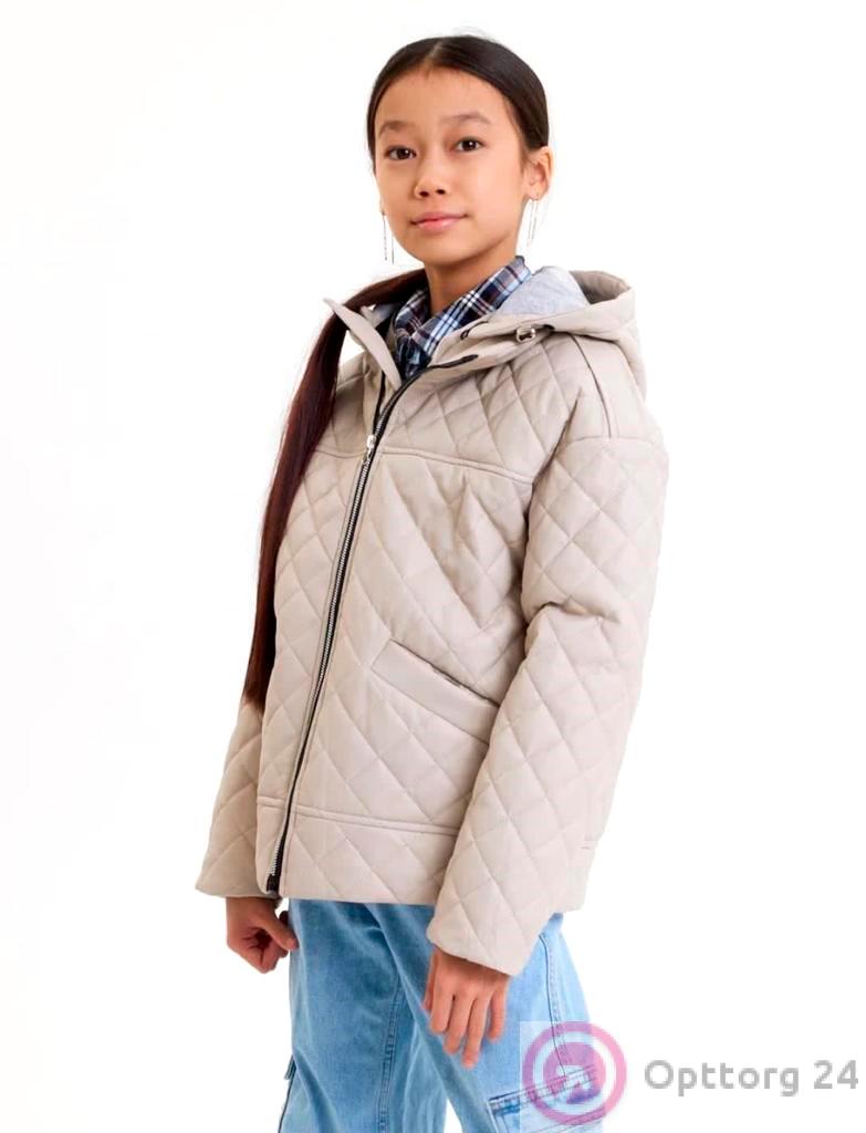 Куртка демисезонная для девочки, короткая бежевого цвета оптом