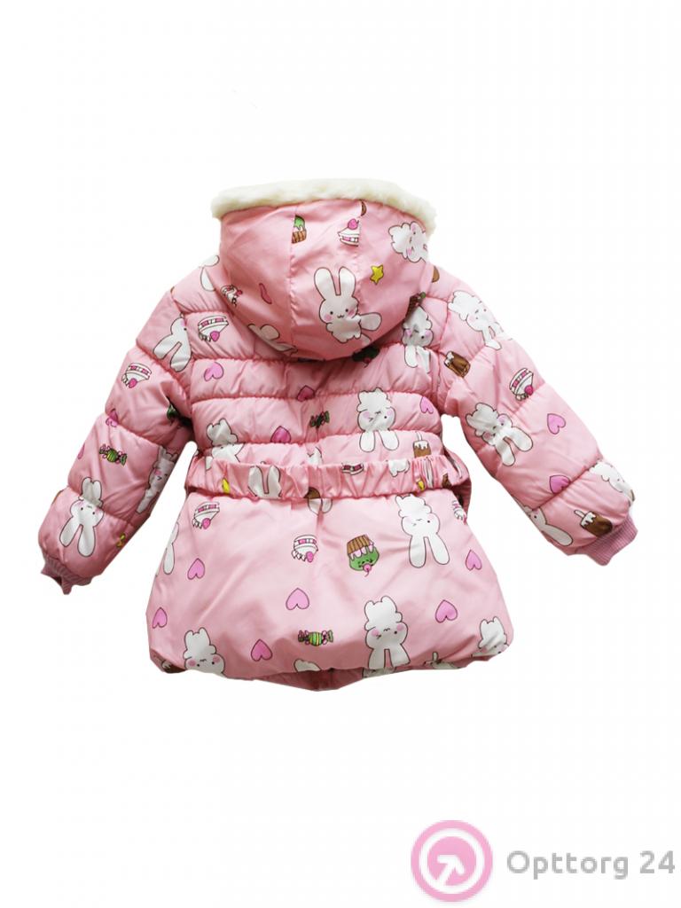 Куртка демисезонная для девочки розовая с милыми зайчиками и цветочком оптом