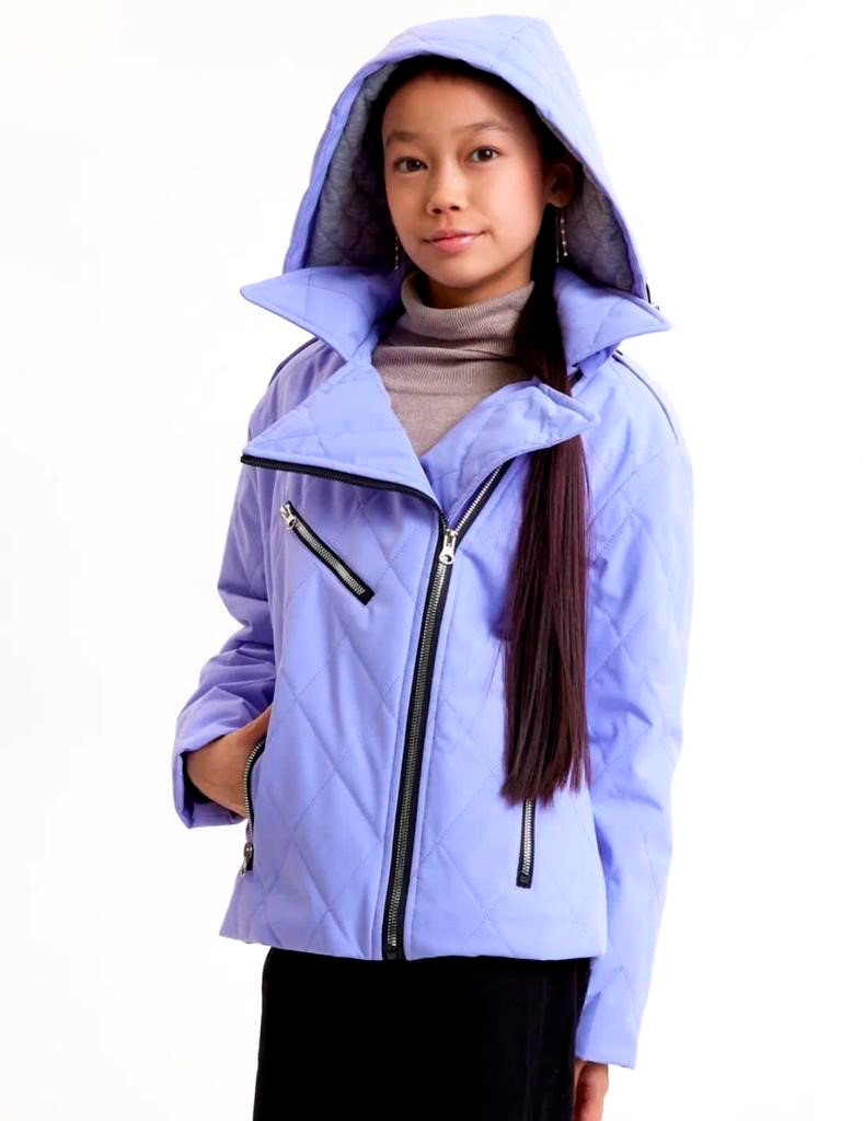 Описание: Куртка выполнена из 100% ПЭ, внутри наполнитель - синтетическое микроволокно, на молнии, сиреневая . Капюшон отстегивается , два боковых кармана. Внутри подклад.
