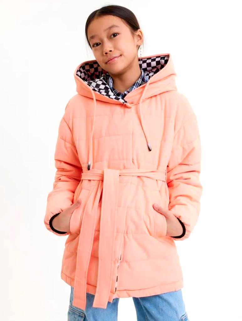 Описание: Куртка выполнена из 100% ПЭ, внутри наполнитель - синтетическое микроволокно, на молнии . Капюшон отстегивается , два боковых кармана, удлиненная. Внутри подклад. Персикового цвета.