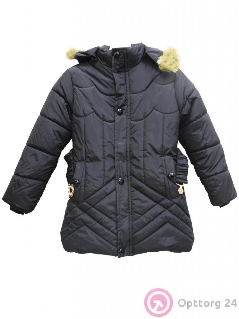 Куртка демисезонная для девочки удлиненная темно-синяя оптом