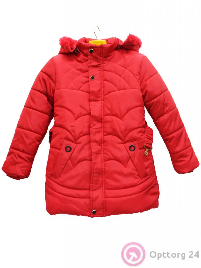 Куртка демисезонная для девочки яркая красная с капюшоном оптом