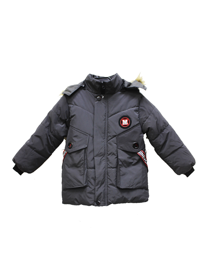 Описание: куртка демисезонная для мальчика буквой М в круге. Есть большие карманы, молния и капюшон.