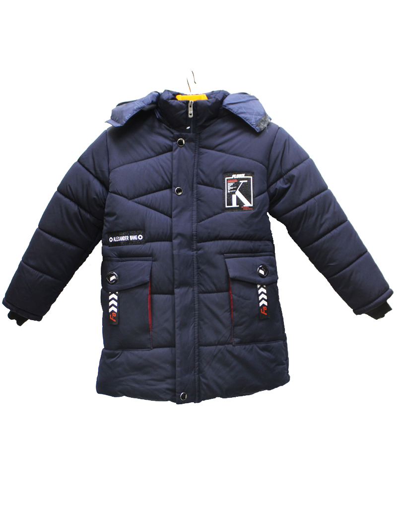 Описание: куртка демисезонная для мальчика с большими карманами и буквой К. Есть молния, застежки, капюшон и карманы.