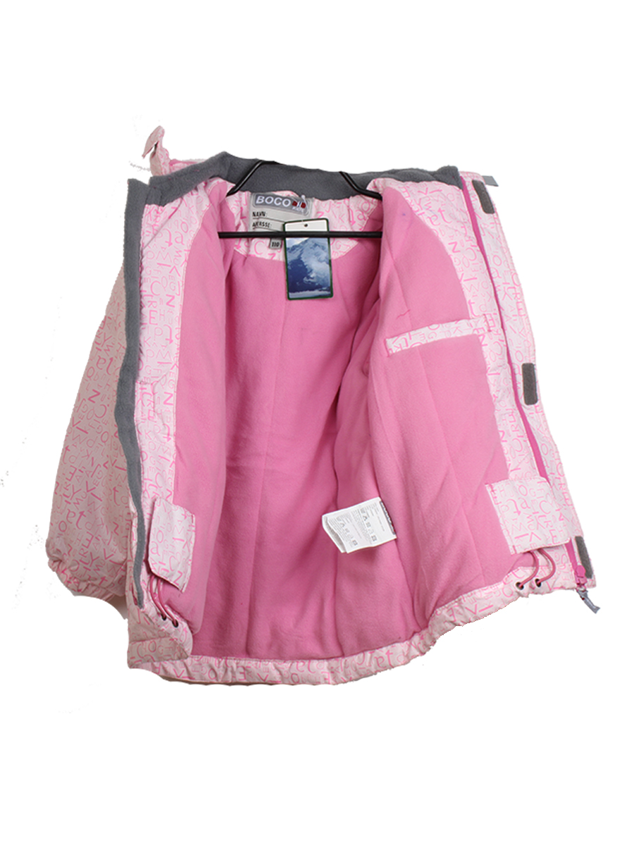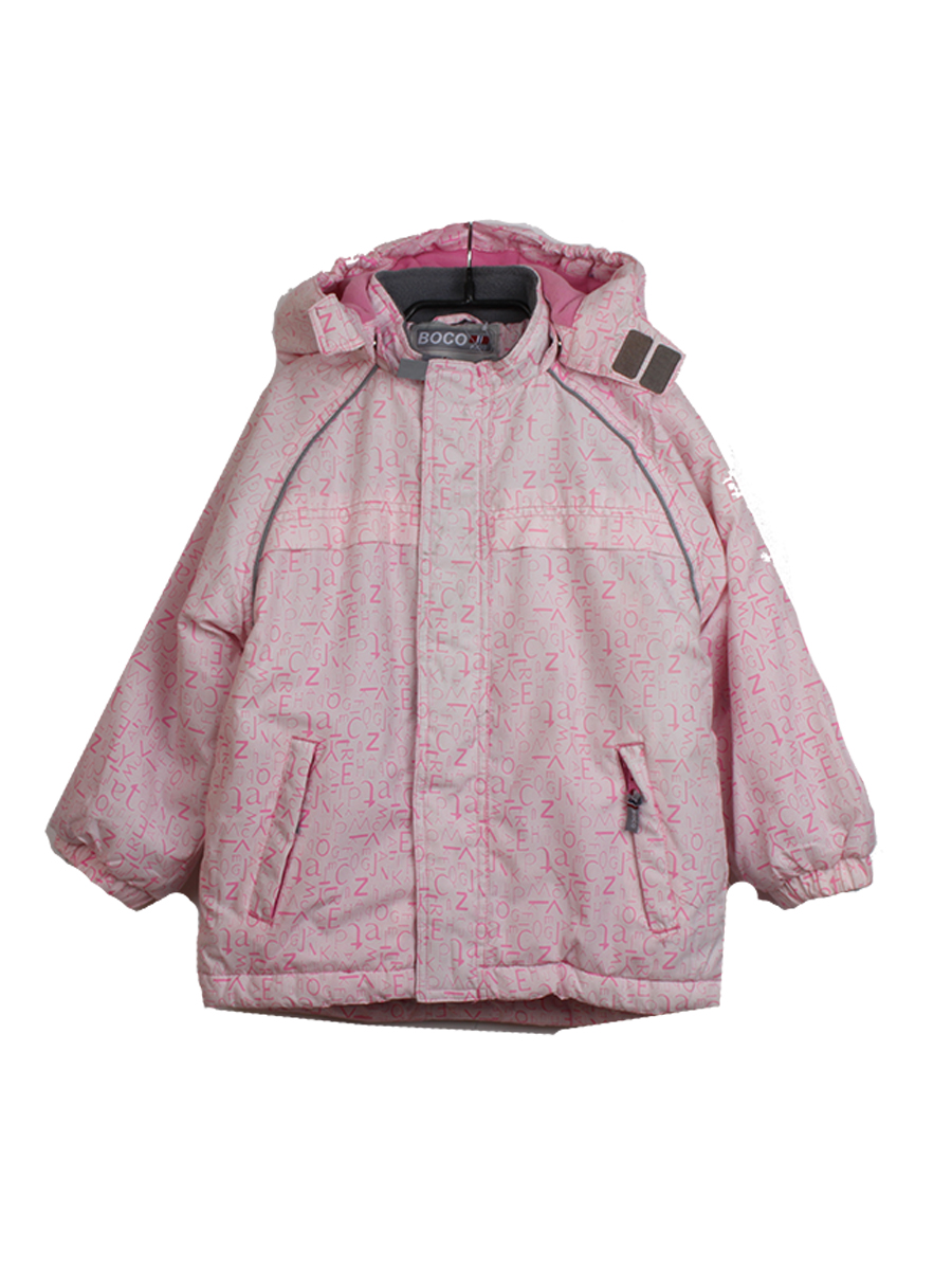 Куртка детская белого цвета с розовыми буквами. Стиль современный. Удобная.