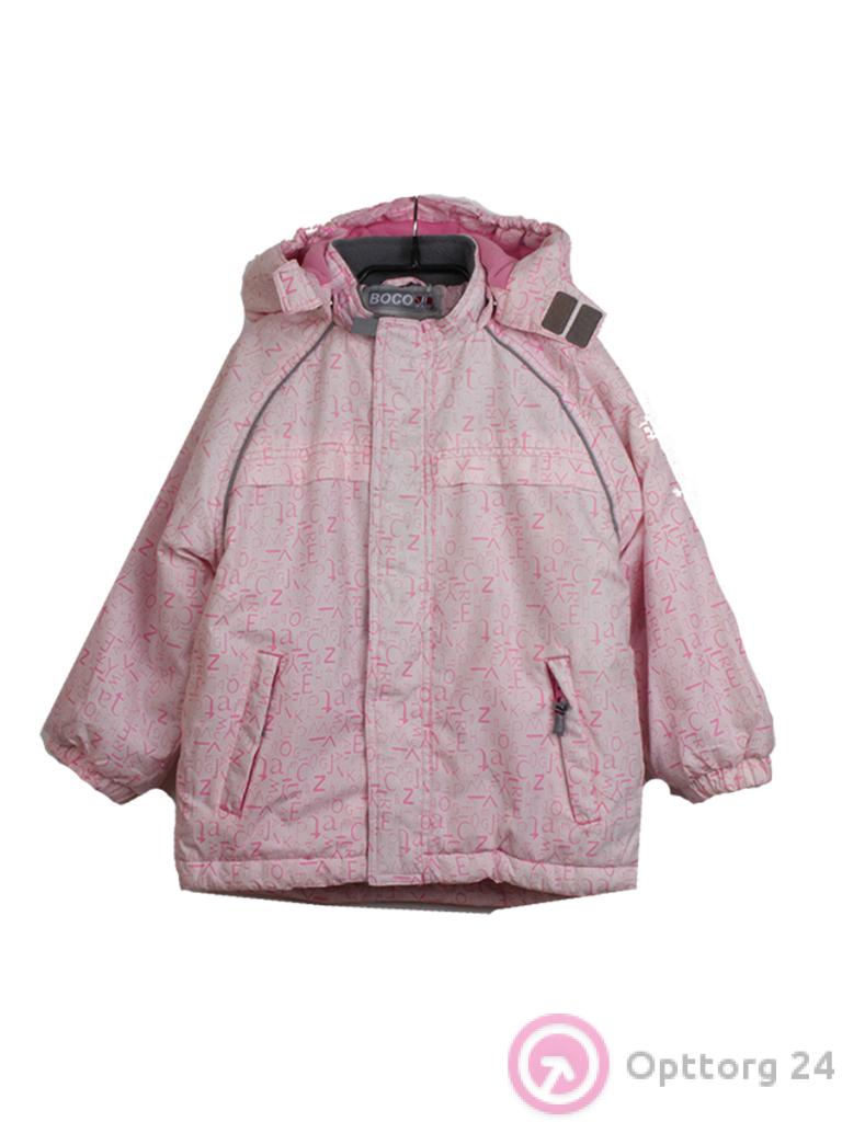 Куртка детская белого цвета с розовыми буквами оптом