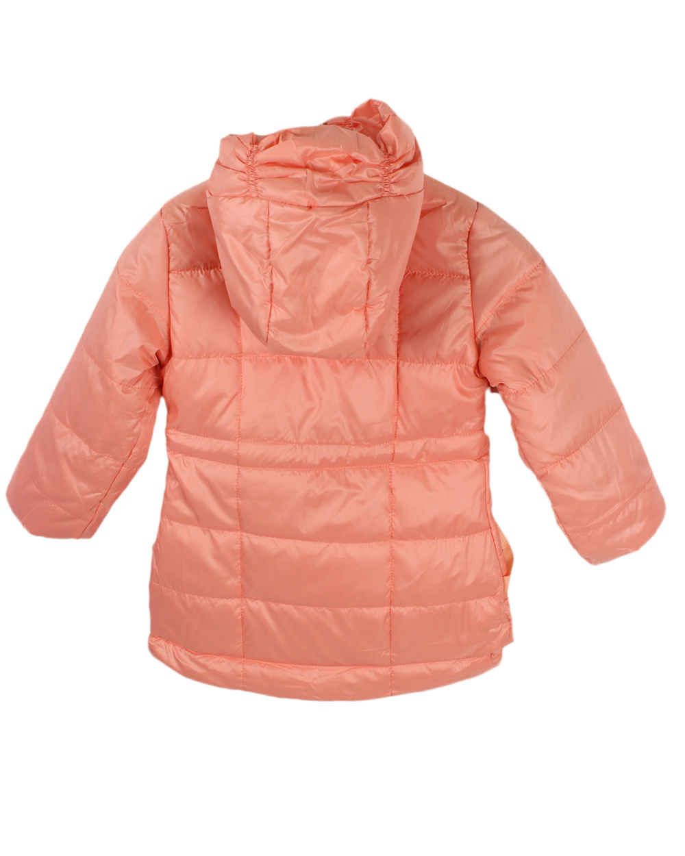 Симпатичнвя немаркая детская куртка для девочек. Изделие имеет капюшон. Спереди слегка укороченая. В изделии предусмотрены карманы на молнии.