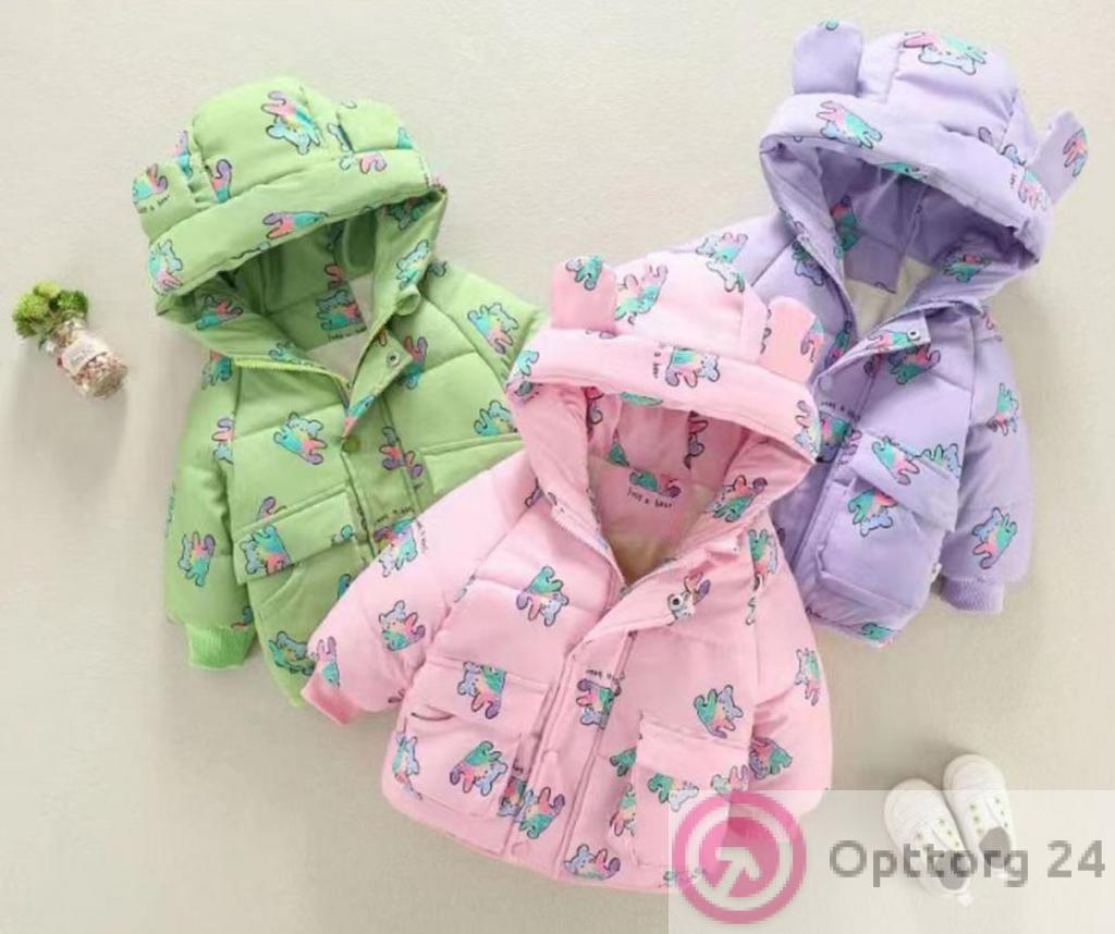 Описание: Куртка детская демисезонная для девочки. Застежка на молнии с ветрозащитной планкой на кнопках. Капюшон декорирован ушками. Есть два накладных кармана. Манжеты рукавов на трикотажной резинке.