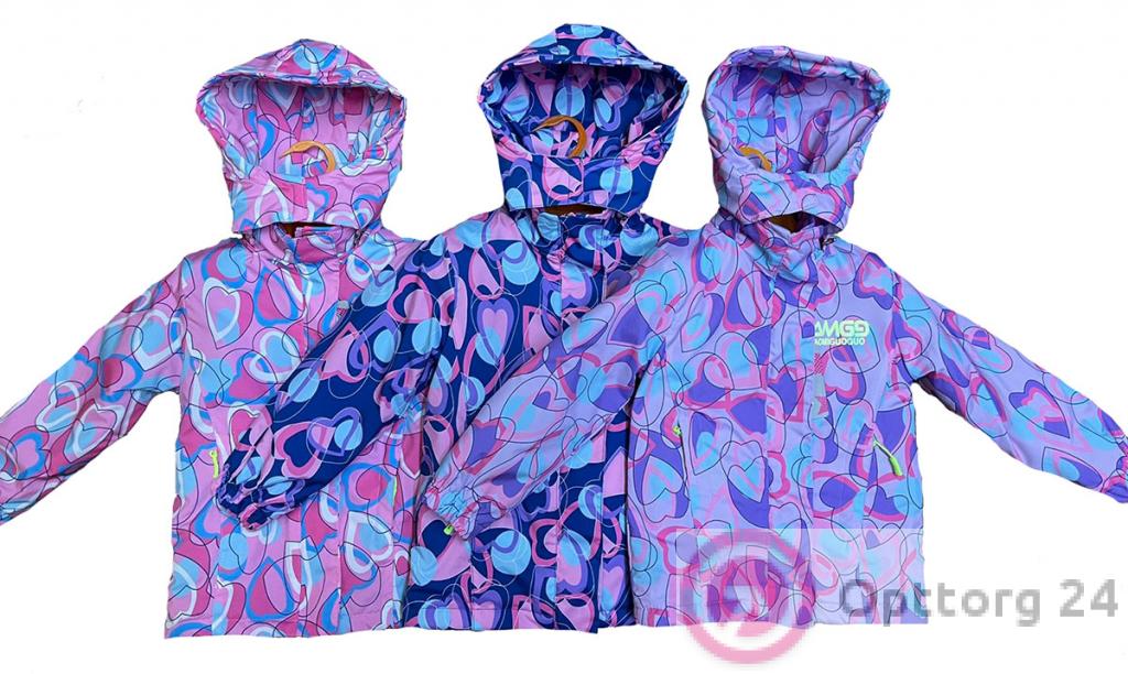 Куртка детская демисезонная с подкладом для девочки с принтом сердечек оптом
