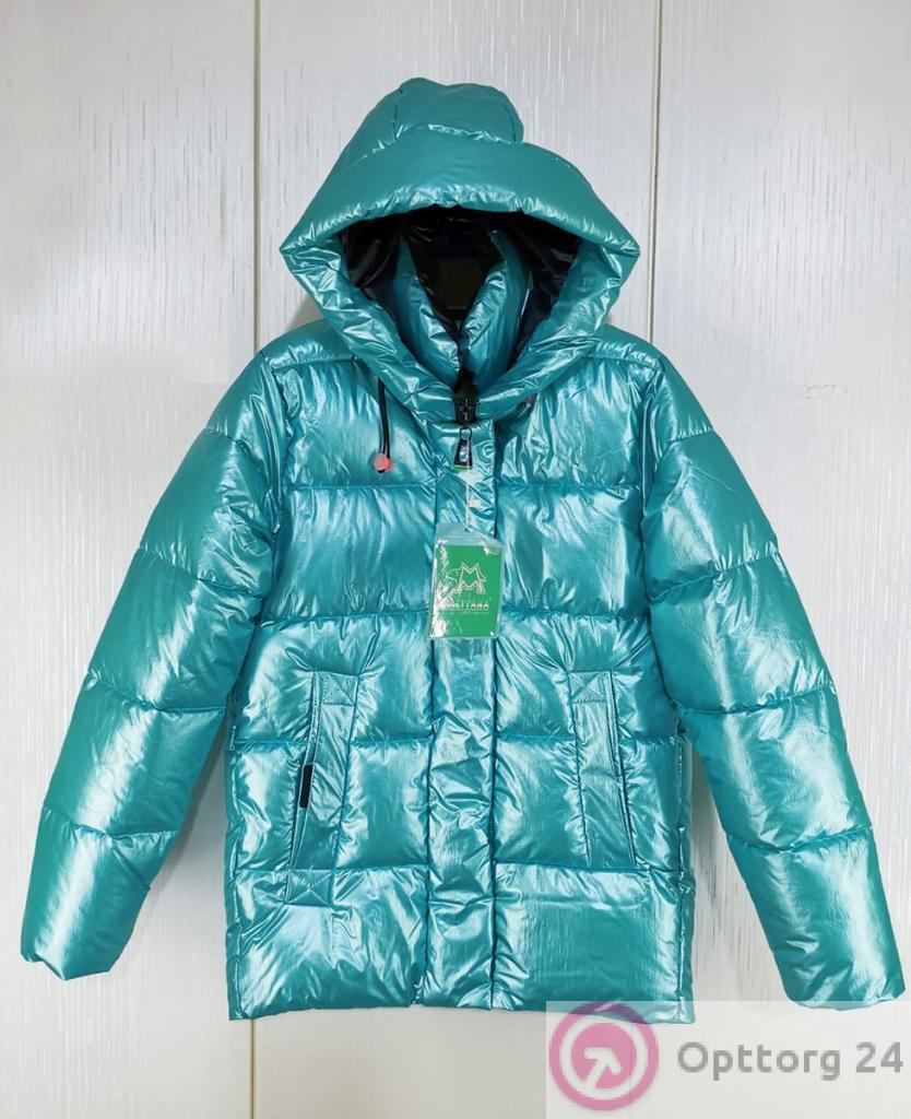 У куртки цвет однотонный с металлическим отливом, удлиненная, стеганная.