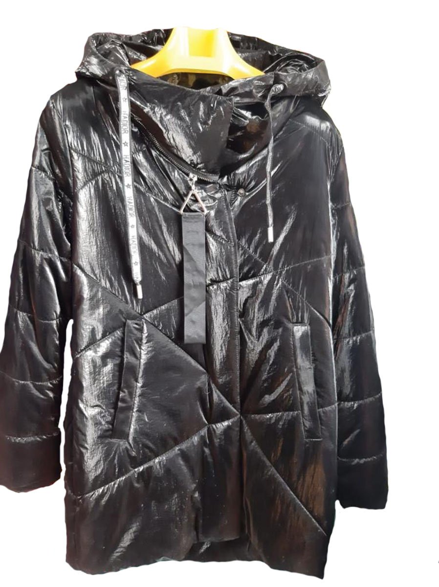 Описание: Куртка-пальто детская для девочки на синтепоне, черного цвета с металлическим отливом. Есть капюшон который декорирован шнурком. Застежка на молнии с ветрозащитной планкой. Есть два кармана.