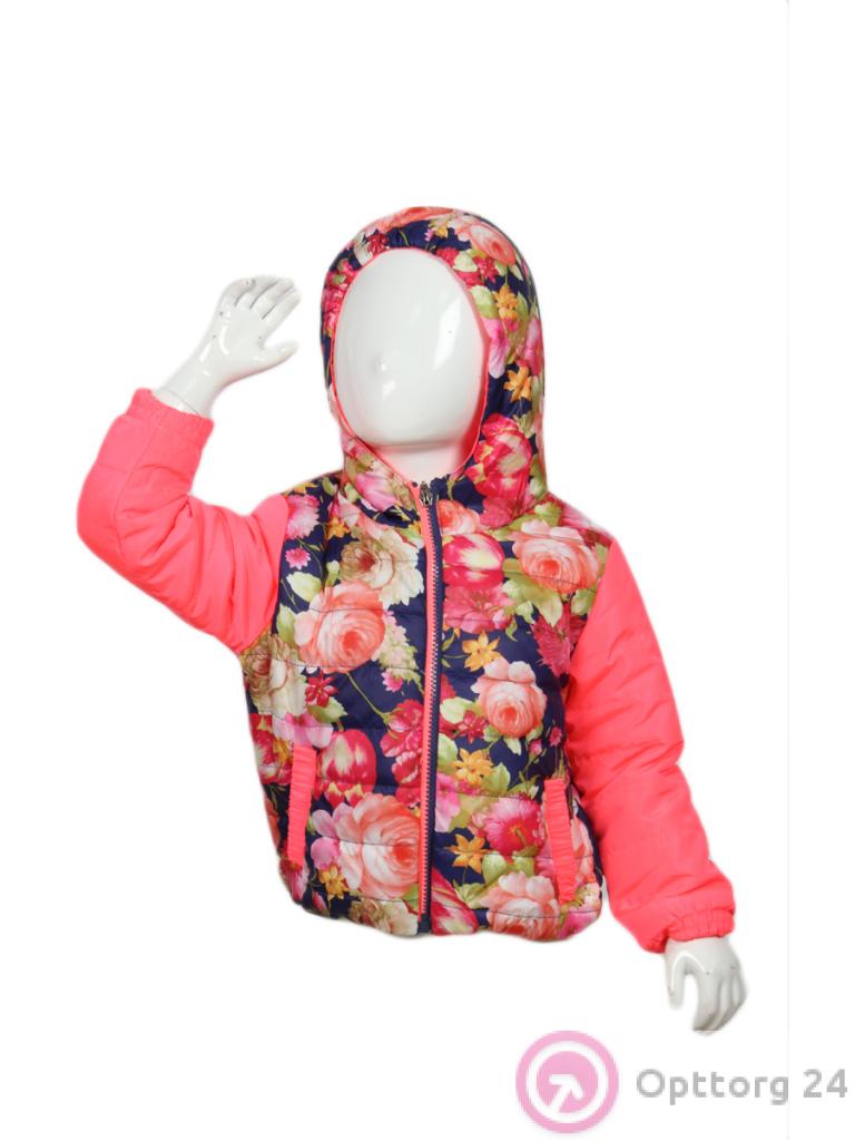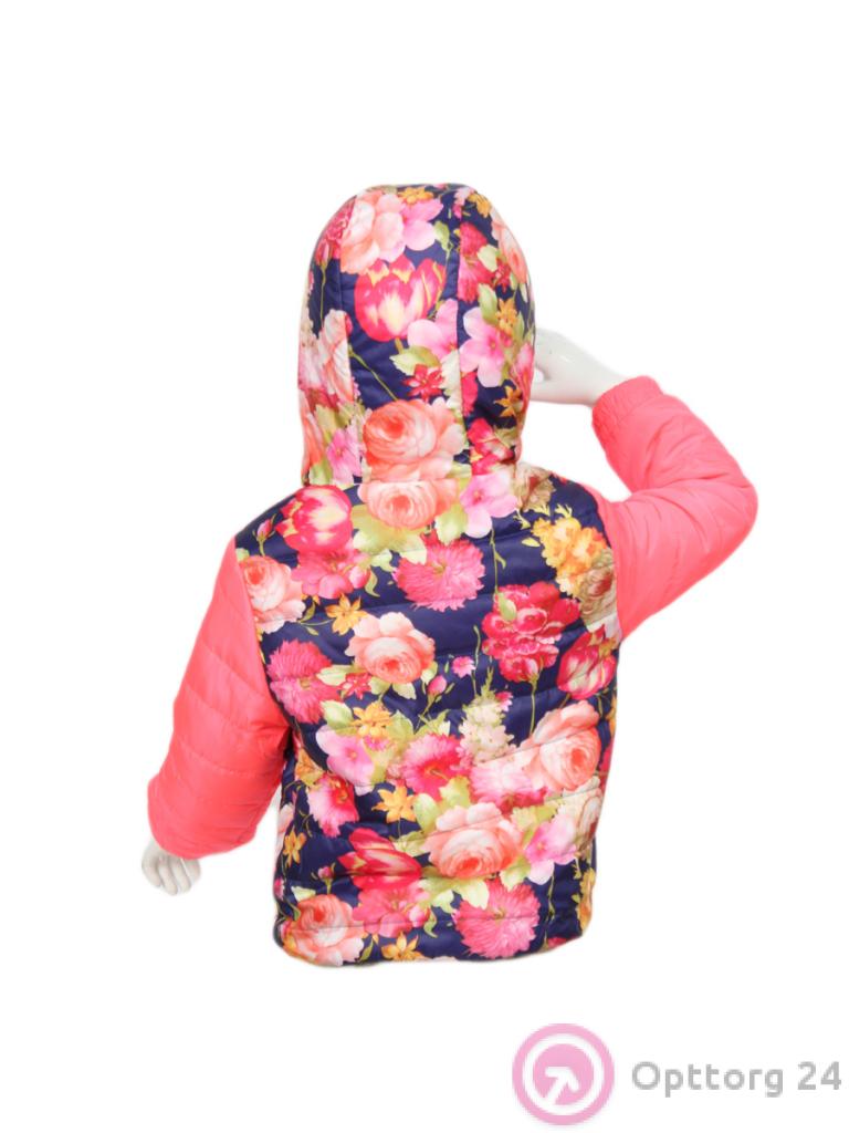 Куртка детская для девочки в цветочек с розовыми рукавами оптом
