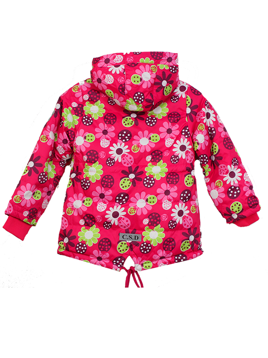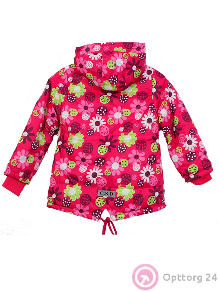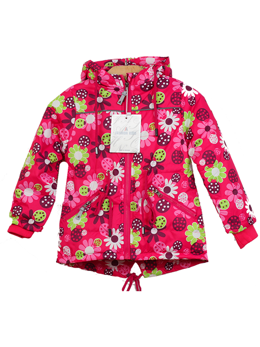 Детская куртка для девочки, низ удлиненны, на шнуровке. Есть капюшон. Куртка для девочки с лесным мотивом ягодного цвета.
