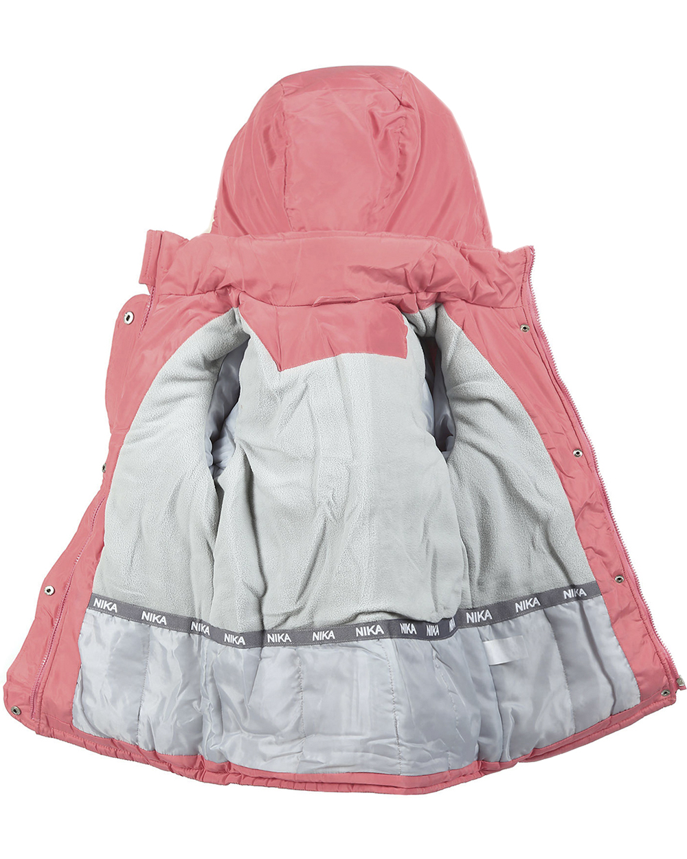 Детская зимняя куртка для девочки .Модель наполена утеплителем синтепон 400гр/м2. Застегивается изделие на молнию, которая спрятана под ветрозащитной планкой. Изделие меет воротник-стойку, благодаря чему лучше защищает в холодную и втеряную погоду. Два нижних кармана застегиваются на кнопки. Капюшон на молнии, так что при необходимости можно отстегнуть. На талии есть пояс с пряжкой. Мех капюшона отстегивается.