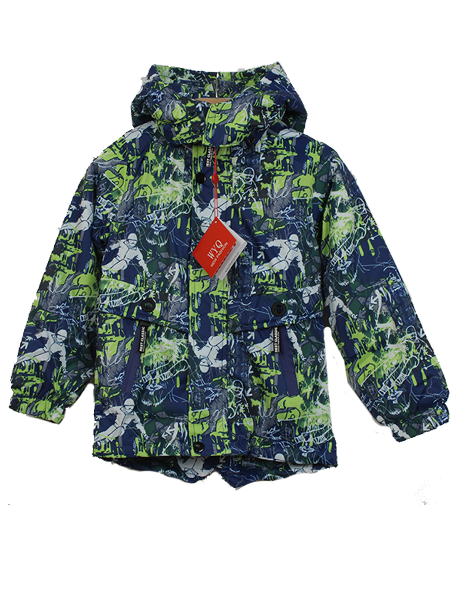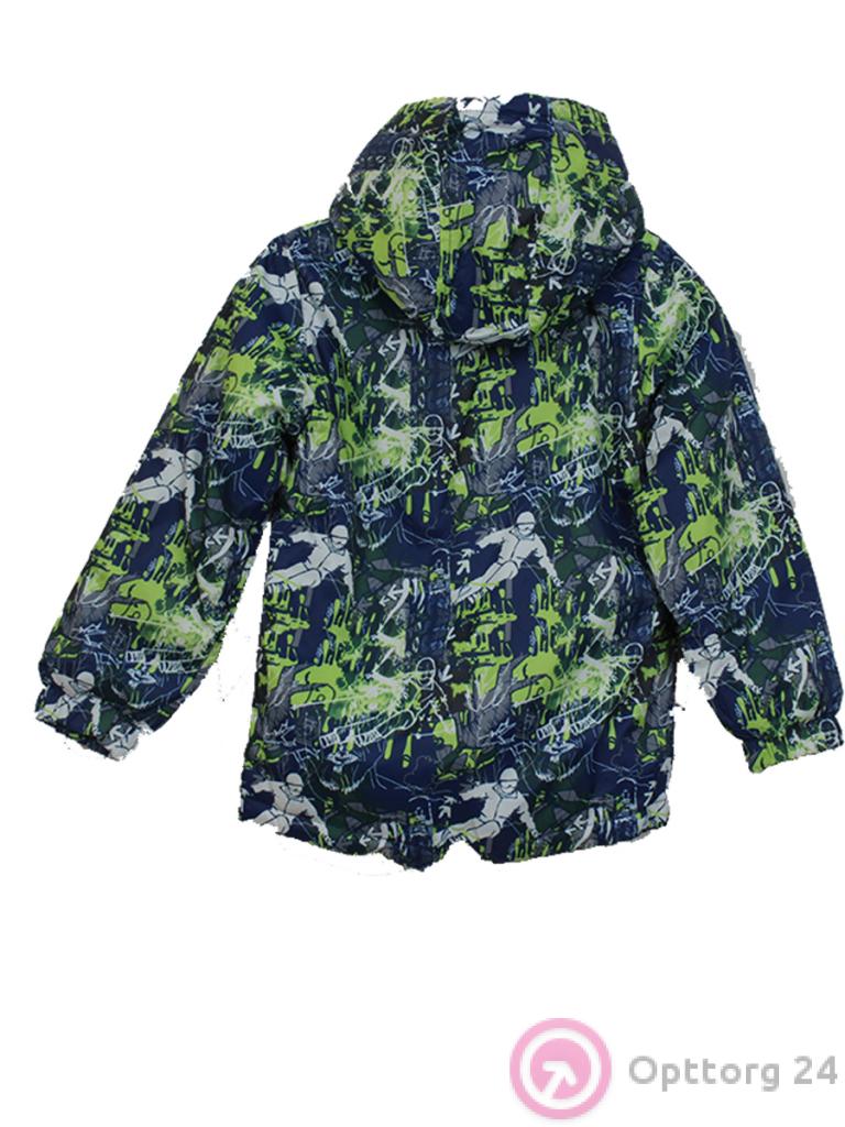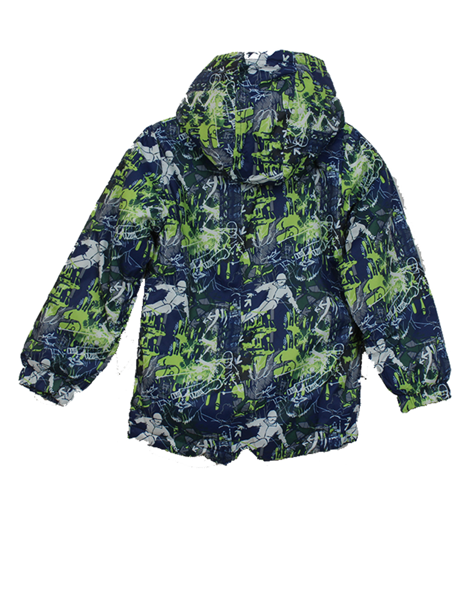 Куртка детская на синтепоне с абстрактным принтом спортсмена. Цвет синий и зеленый