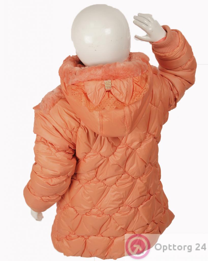 Куртка детская оранжевого цвета с мехом на плечах и на капюшоне оптом