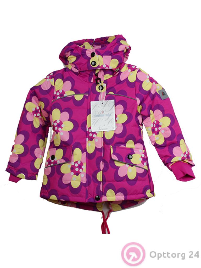 Куртка детская с цветочками розового цвета для девочки оптом