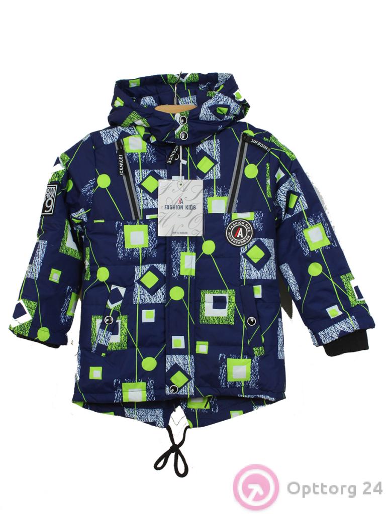 Куртка детская с салатовыми фигурами темного синего цвета оптом