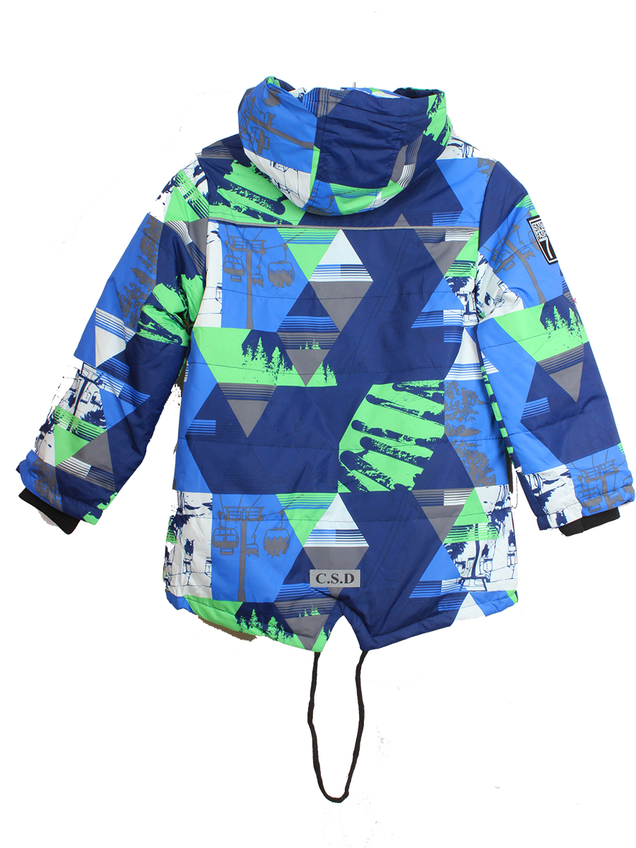 Высокое качество изделий. Стиль современный. Куртка детская для мальчика темно-синяя с прямоугольными яркими вставками