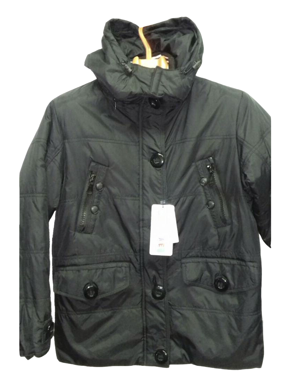 Легкая демисезонная курточка с ветрозащитной планкой на застежке и большими пуговицами. В изделии есть капюшон с утяжками.