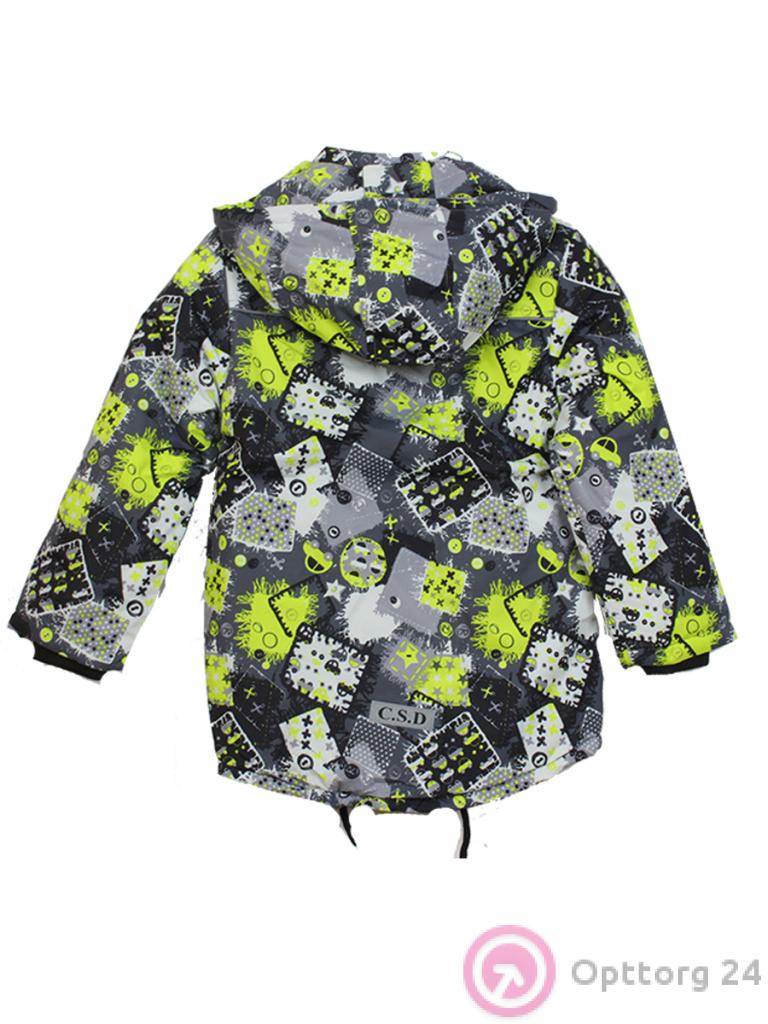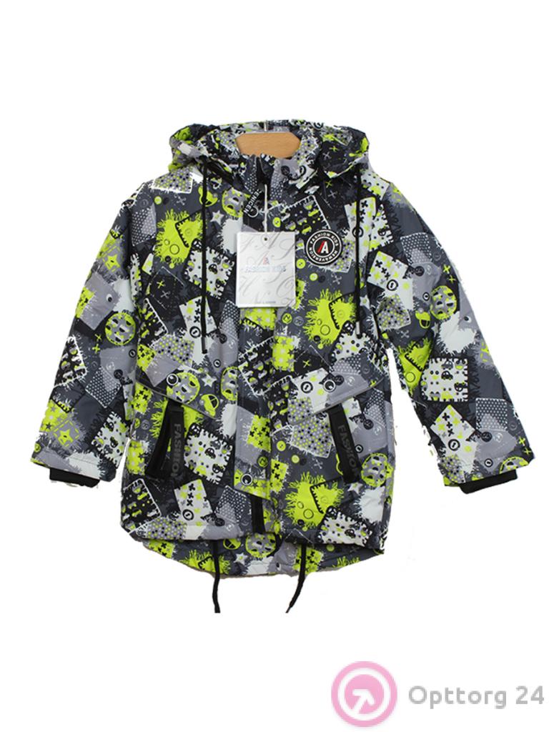 Куртка детская серого цвета с принтом ярко-салатовым для мальчика оптом