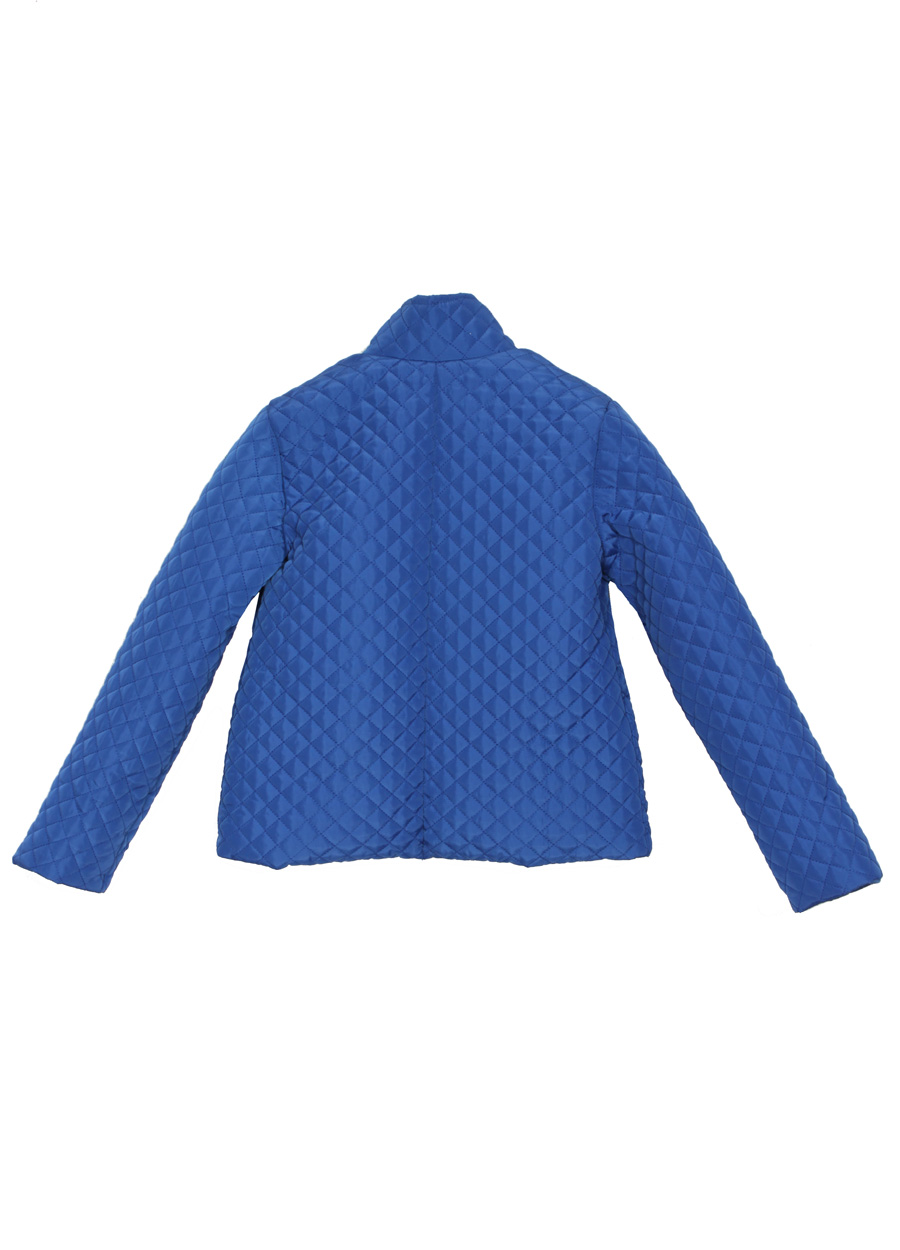 Куртка синего цвета детская на молнии. Имеет ромбовый узор и вместительные карманы