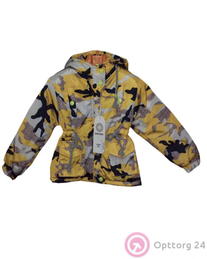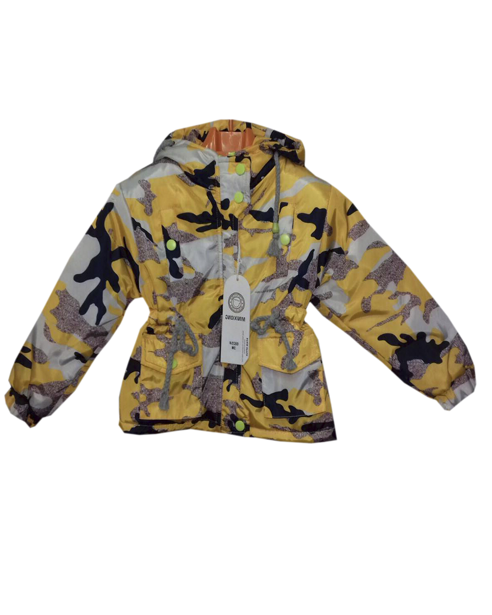 Куртка детская синяя с камуфляжным принтом желто-черного цвета оптом