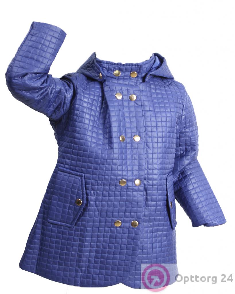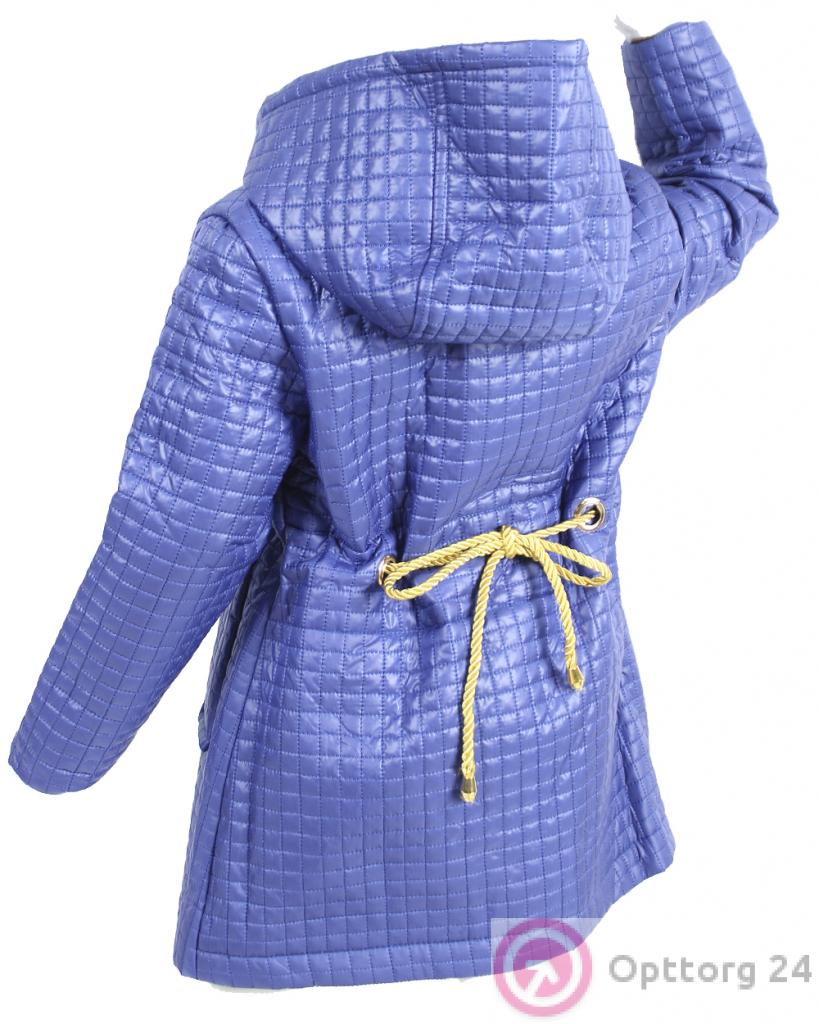 Куртка детская стёганая для девочек синего цвета с поясом. оптом