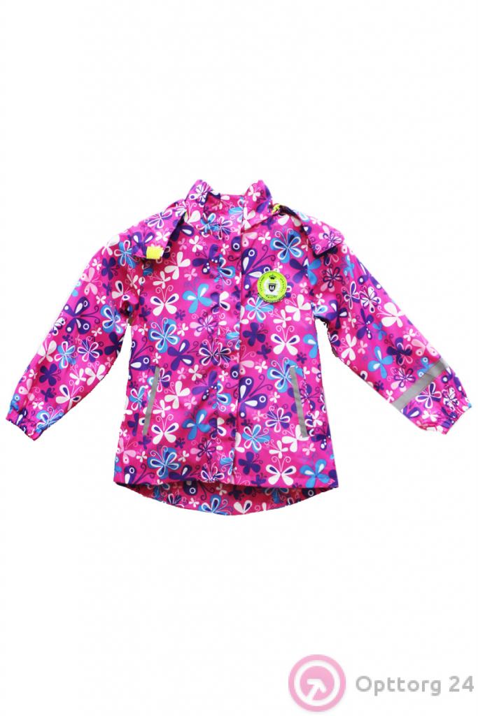 Описание: Куртка для девочки демисезонная розовая с цветными бабочками. Есть карманы, рукава на резинке.