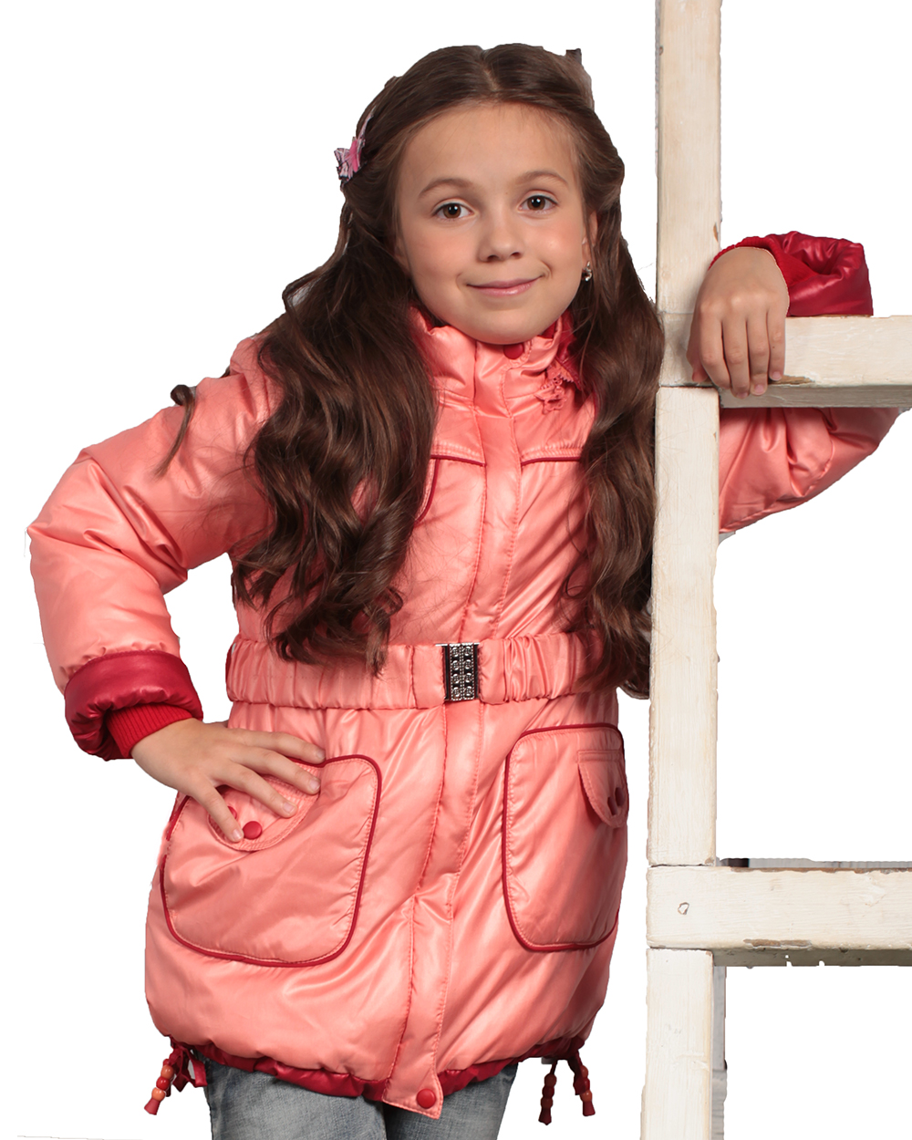 Удобная и теплая куртка для девочек отвечает всем современным тенденциям. Нежно-коралловый цвет хорошо сочетается с красной строчкой и манжетами в тон. Эластичный поясок подчеркивает талию и создает дополнительный заслон для ветра.