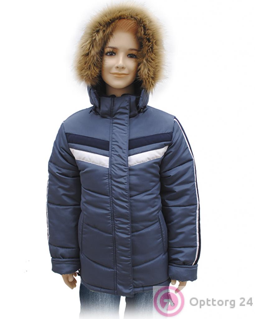 Куртка для мальчика цвета джинс с белыми полосками оптом