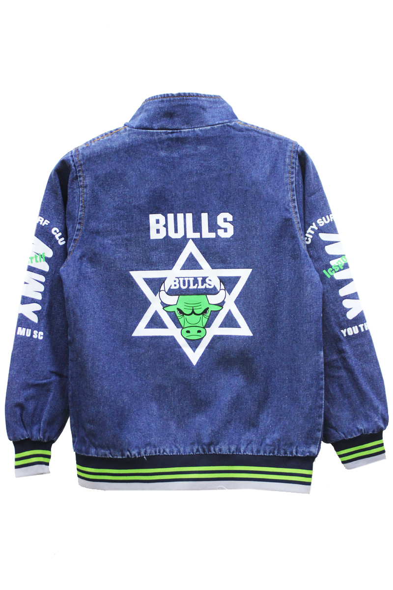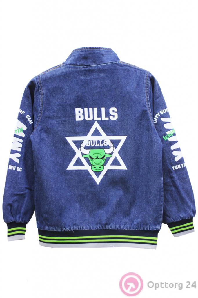 Куртка для мальчика демисезонная джинсовой с изображением быка оптом