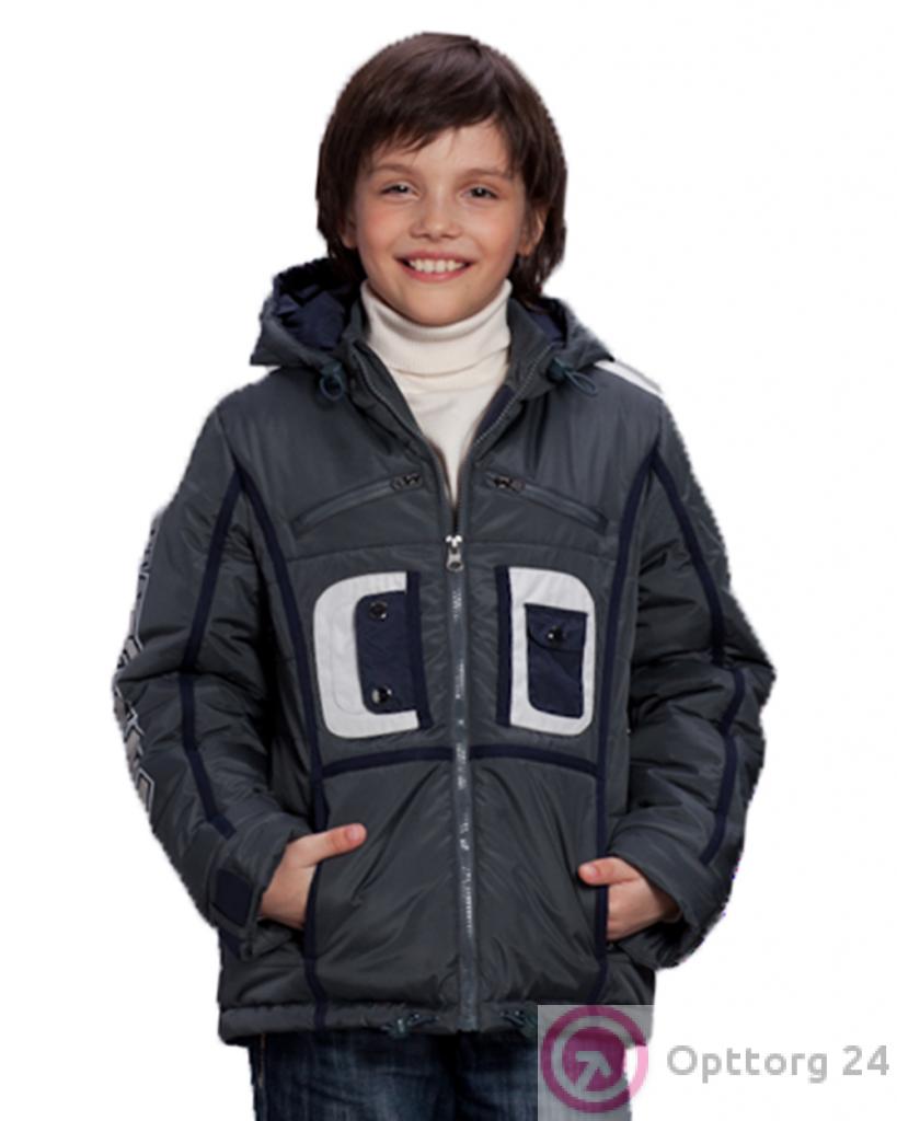 Куртка для мальчика на синтепоне черная с синим кантом оптом