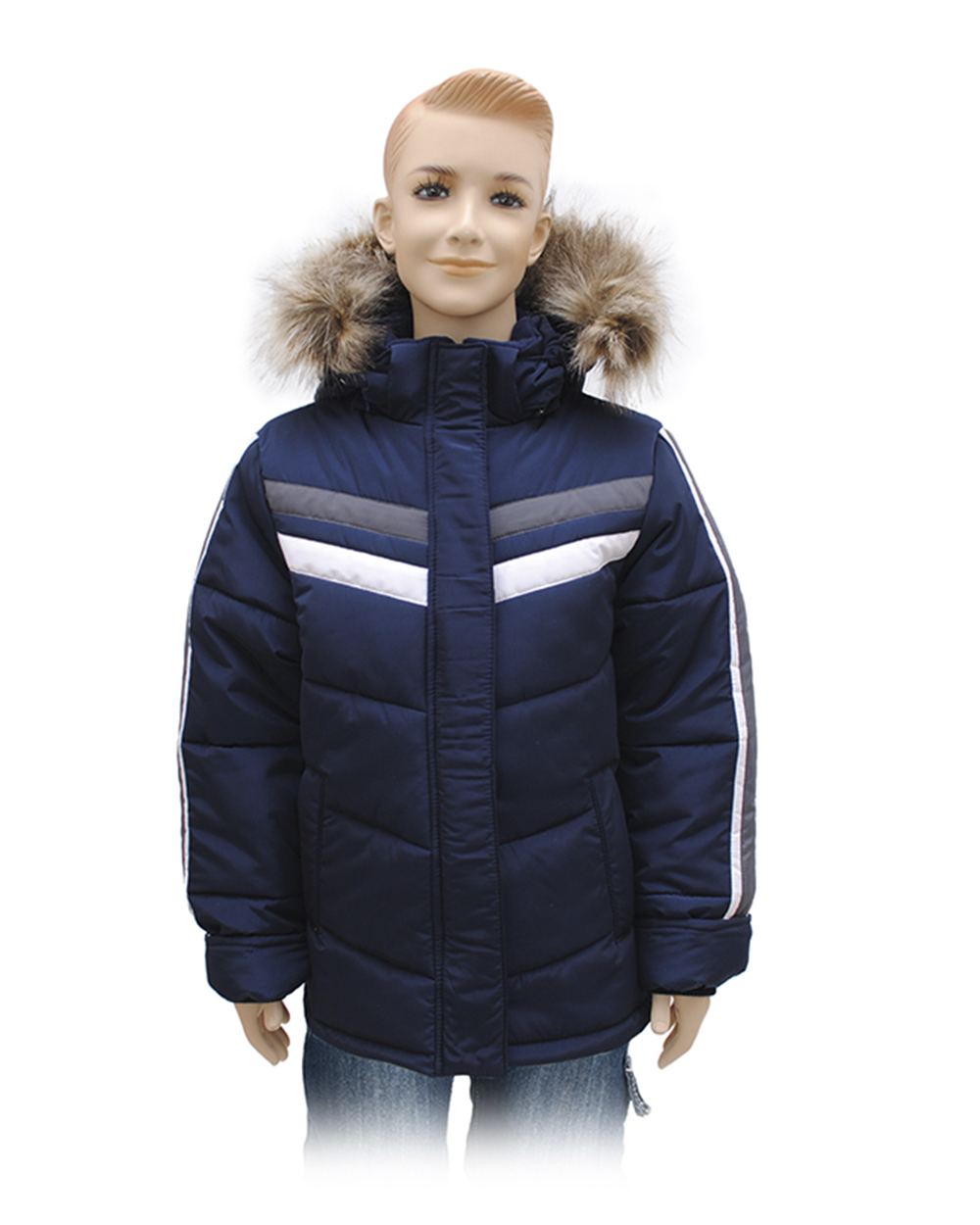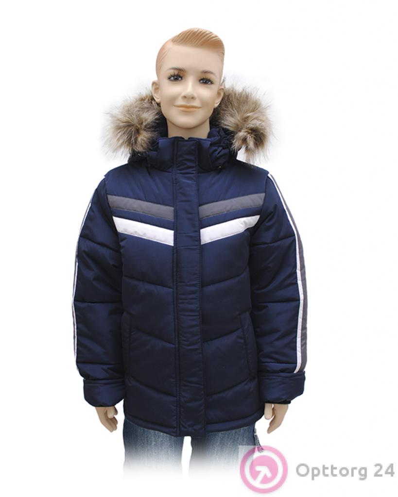 Куртка для мальчика синяя с белыми полосками оптом