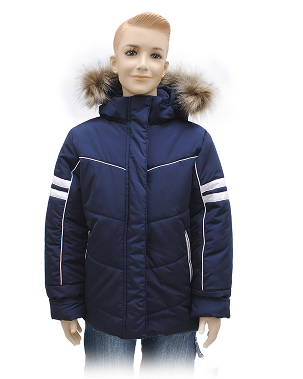 Куртка для мальчика синяя с белыми полосками на рукавах оптом