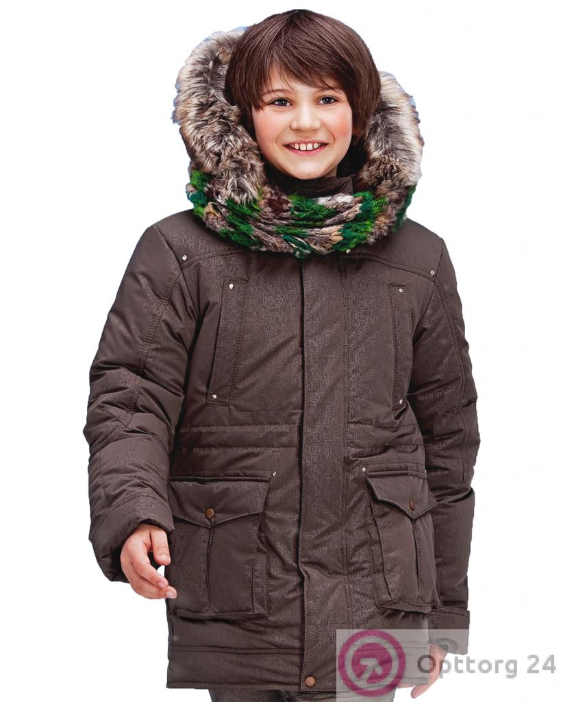 Куртка для мальчика темно-серая с узором на ткани оптом