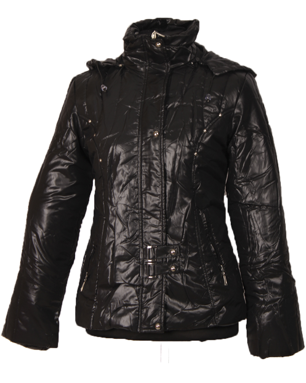 Женская куртка с приталенным силуэтом. Изделие дополнено удобным капюшоном и застегивается на молнию и кнопки. Кнопки выполнены в виде полусферы.