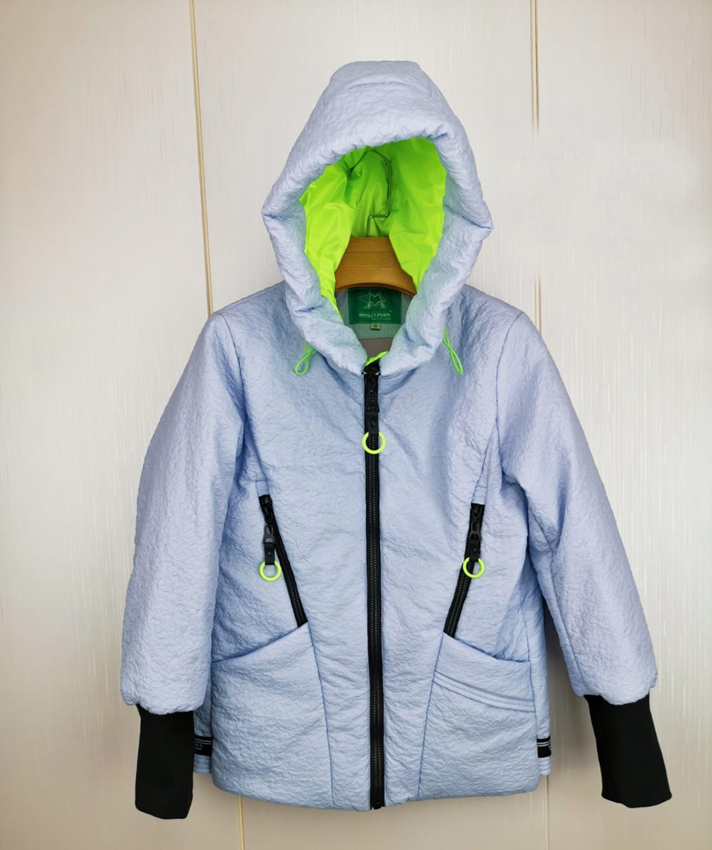Описание: Куртка подростковая демисезонная для девочки цвет серо-голубой. Высокий воротник. Застежка на молнии. Есть капюшон и два кармана. Манжеты рукавов на трикотажной резинке.