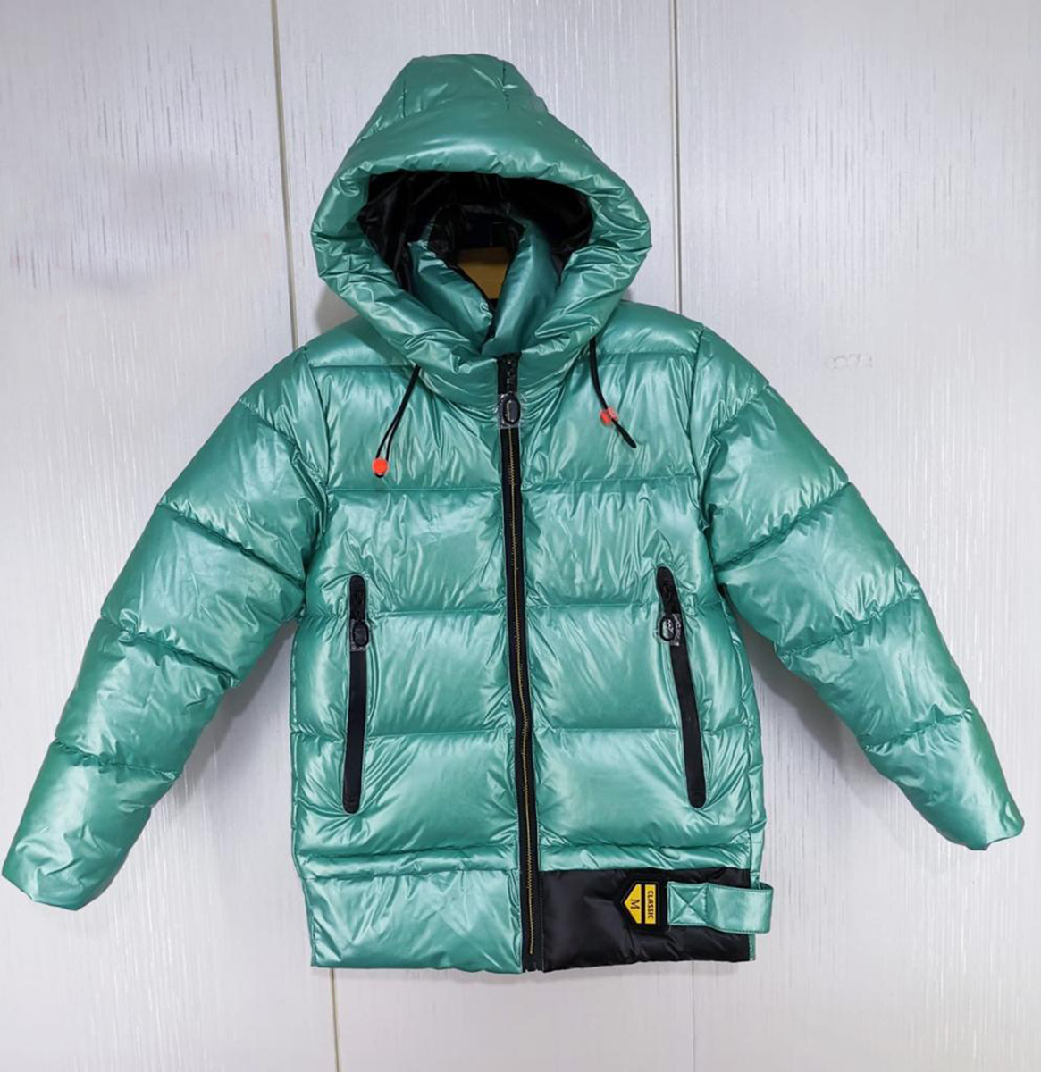Описание: Куртка подростковая для девочки на синтепоне бирюзового цвета с жемчужным отливом. Высокий воротник. Застегивается на молнии, есть два кармана. Капюшон декорирован шнуровкой.