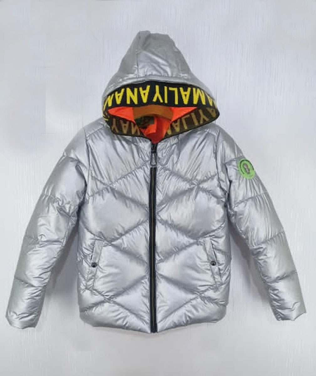 Описание: Куртка подростковая для девочки на синтепоне серебряного цвета. Застегивается на молнии, есть два кармана. Капюшон декорирован надписью.
