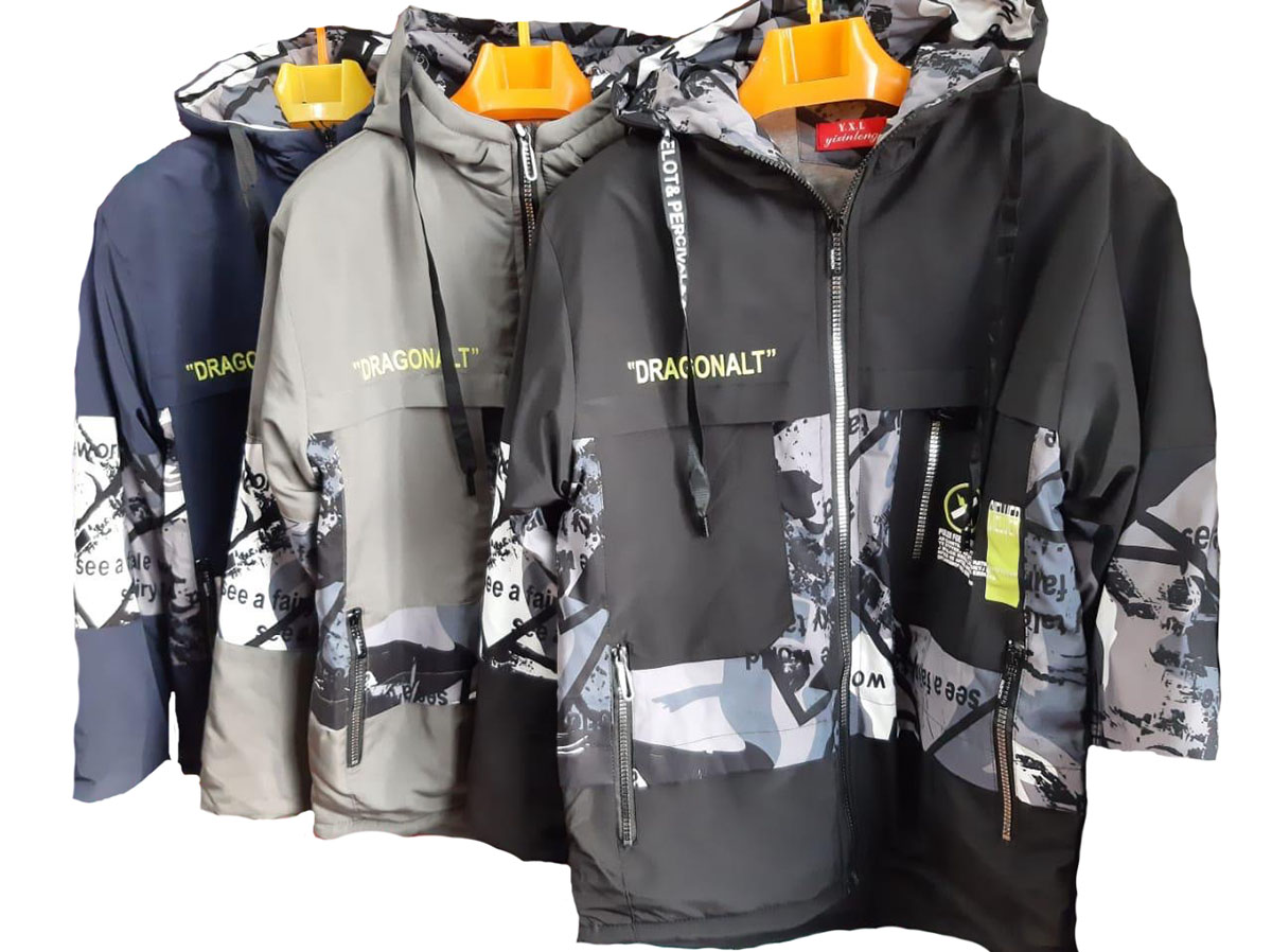 Куртка подростковая для мальчика на синтепоне с капюшоном оптом