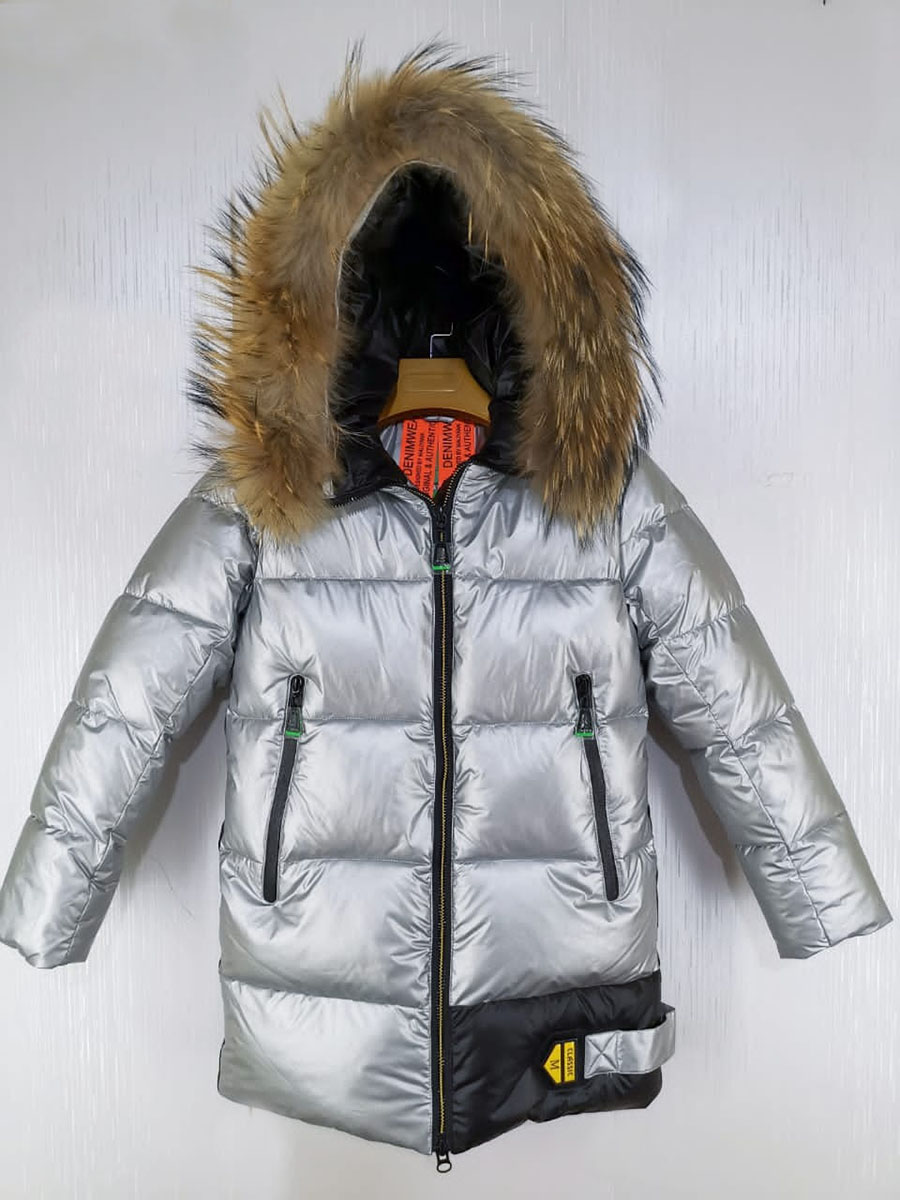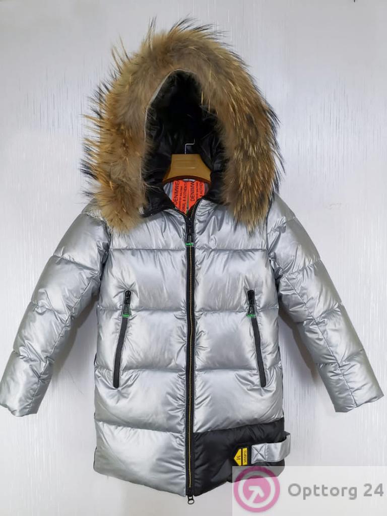 Куртка подростковая с натуральным мехом для девочки металлического цвета оптом