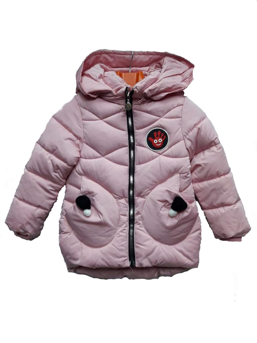 Описание: куртка утепленная для девочки с капюшоном и декорациями. Цвет бледно-розовый. Температурный режим - до -5гр. Есть два кармана. Застежка молния.
