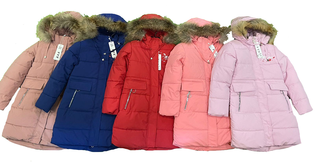 Куртка зимняя детская с натуральным мехом для девочки нежных тонов оптом