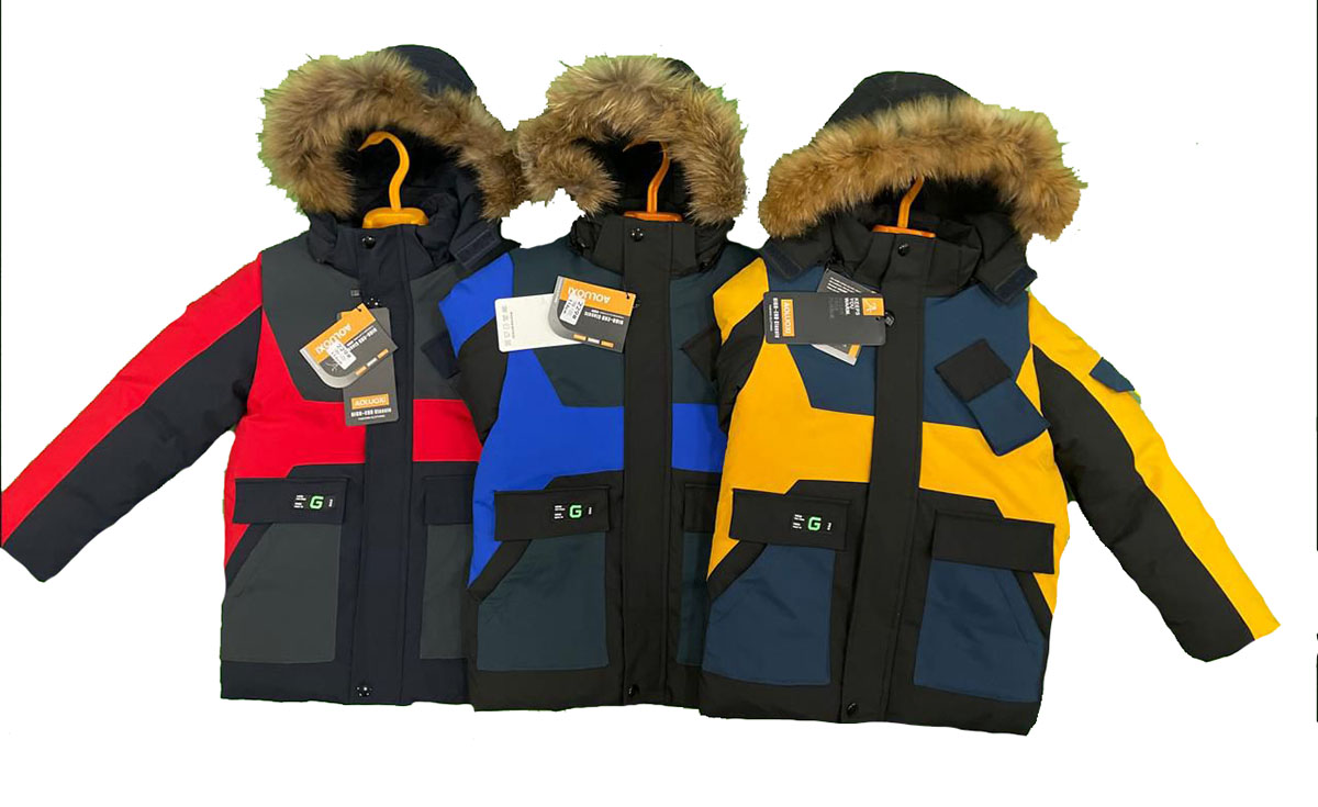 Куртка зимняя детская с натуральным мехом для мальчика цветная оптом