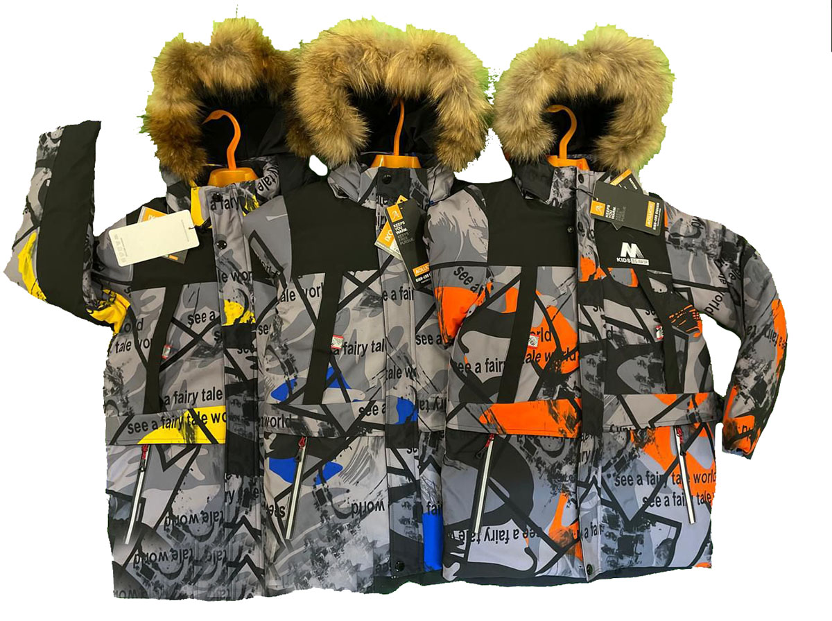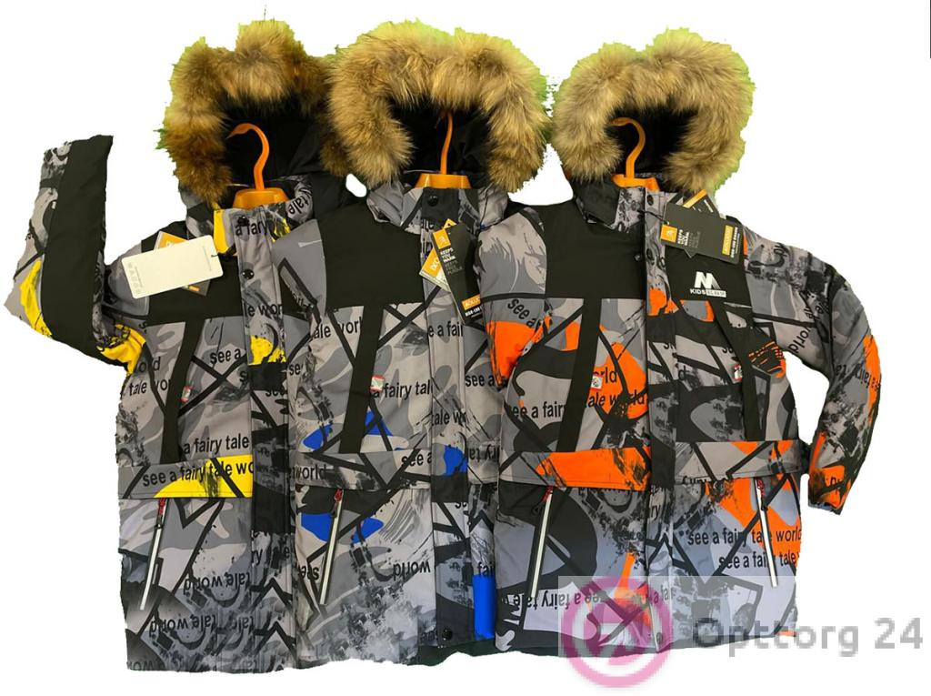 Куртка зимняя детская с натуральным мехом для мальчика оригинальной расцветки оптом